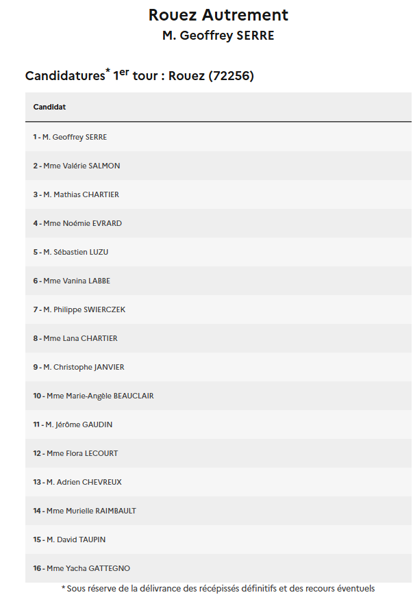 Liste des candidats dans l'ordre de publication de la préfecture