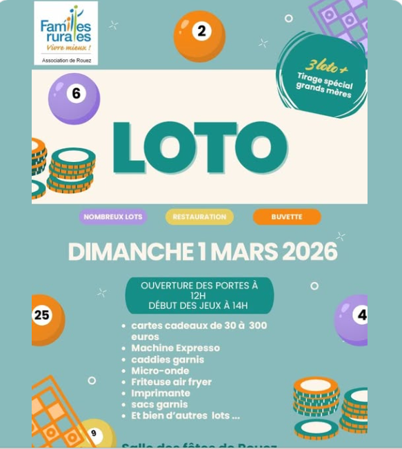loto salle des fêtes de Rouez organisé par Familles Rurales